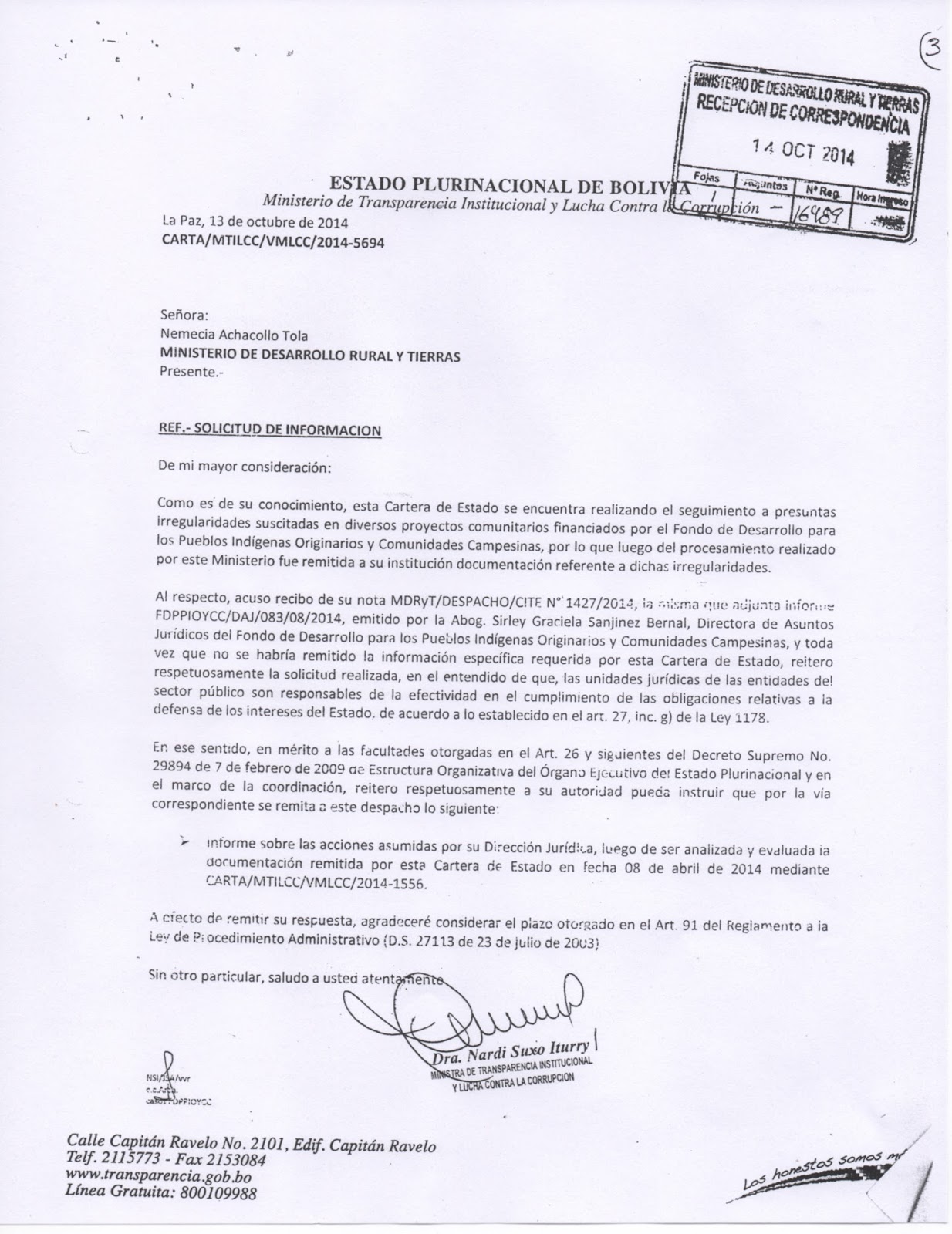 Aramayo: Nemesia miente, nunca pidió informes sobre los 153 proyectos observados