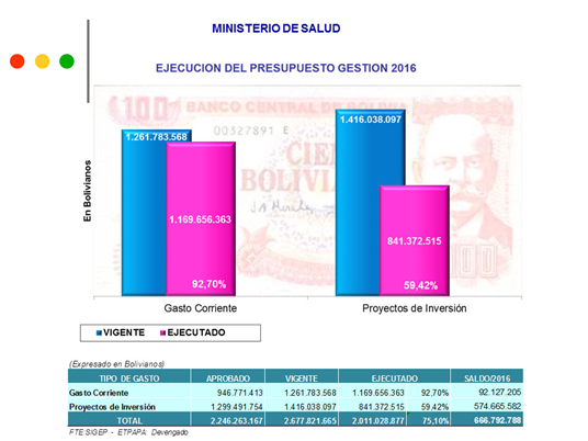 Fuente: Sistema de gestión Pública/MEFP, 2016. El presupuesto global sin inversiones, asciende a 630 MM$us. Las transferencias al gobierno central suman 27.2 MM$us. |