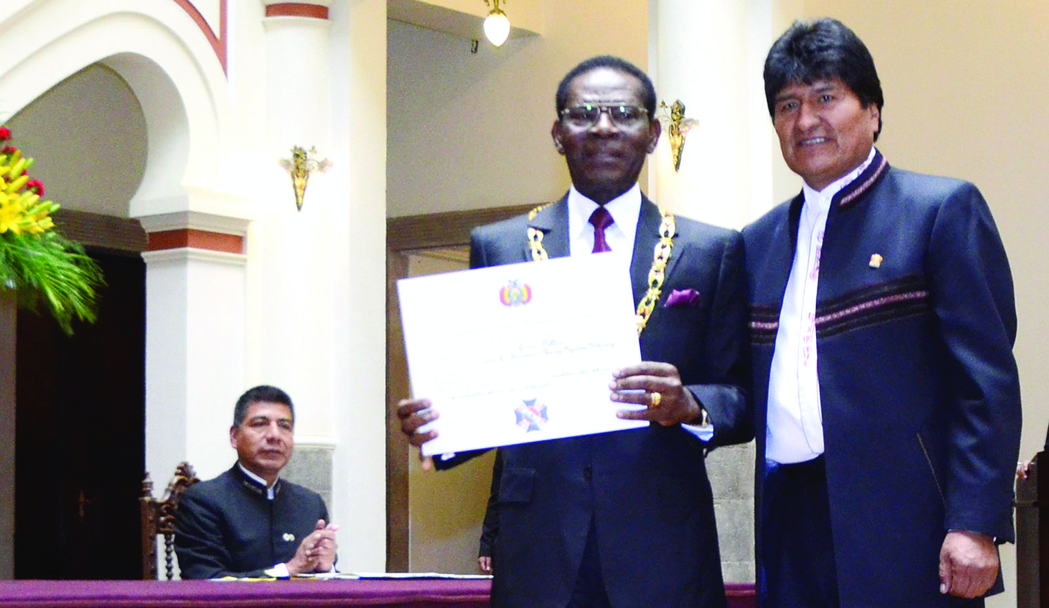 Morales condecoró y pidió el año pasado al dictador Teodoro Obiang, que llegó al país, la fórmula para eternizarse en el poder.