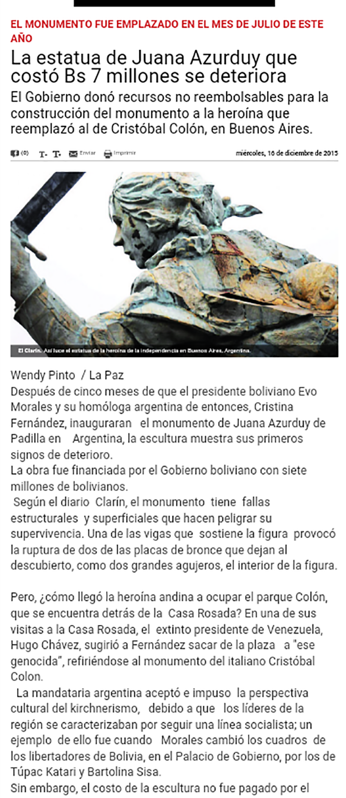 Chau monumento a Juana Azurduy, hola Paseo del Bajo