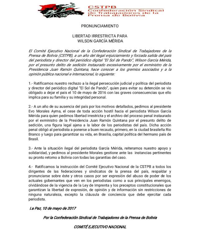 Confederación de la Prensa pide cesar persecución judicial y política contra Wilson García
