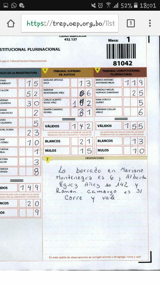Y otra vez, en la parte de observaciones, los números manipulados van en beneficio de Egüez.