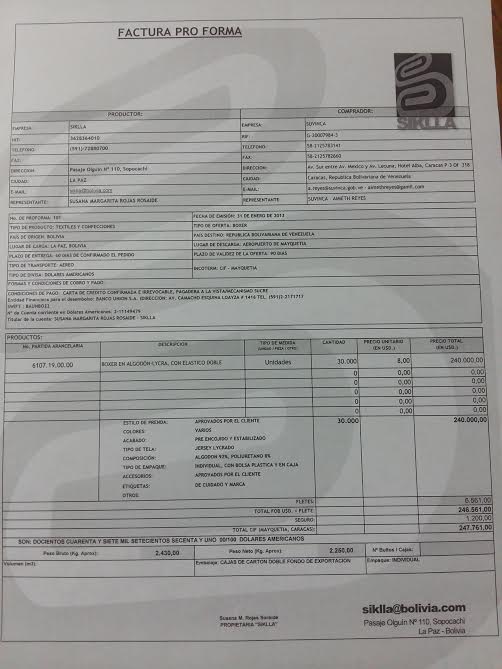 “Su empresa unipersonal fue bautizada como Siklla y generó proformas para Suministros Venezolanos Industriales (SUVINCA) por más de 5 millones de dólares”, subrayaron los denunciantes y sugirieron a las autoridades, para verificar el dato, analizar los movimientos de dineros en las cuentas que figuran en las facturas proforma.