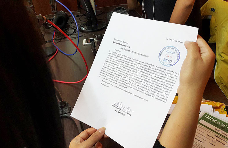 “Del Ministerio de Gobierno recibí la respuesta para una cita el 20 de enero. Me reuní con el asesor del ministro y después de eso nunca más se volvieron a contactar. Quería que me ayuden porque no quería ir a la policía porque tenía miedo de que la información se filtre y la vida de mi familia corra peligro”, contó Nohemí y agregó que su padre tiene mucho poder y protección debido a sus relaciones de amistad con personas de altos cargos.