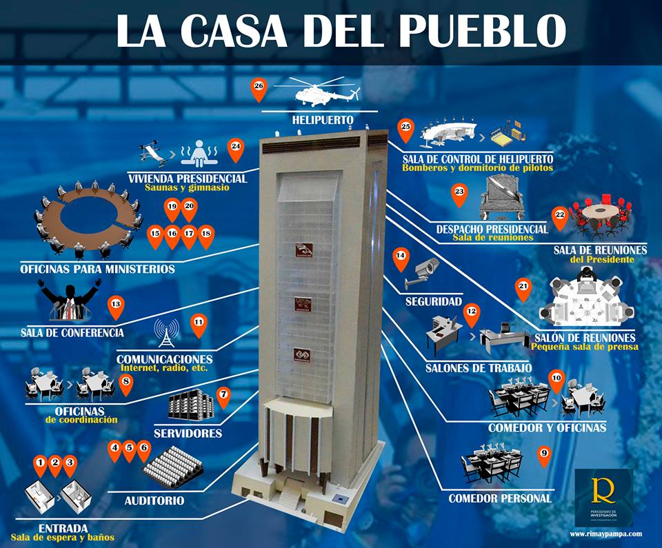 El nuevo palacio de gobierno, cuyo costo ronda los 36 millones de dólares, tendrá sauna y gimnasio en el piso 24, donde estará la vivienda presidencial, según los planos a los que tuvo acceso RimayPampa.El nuevo Palacio tendrá sauna y gimnasio en la vivienda del Presidente.