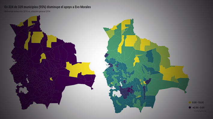 Evo perdió 30% de apoyo en El Alto y 20% en dos poblaciones del Chapare entre 2009 y 2016.