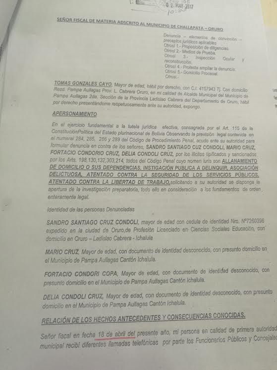 Exigieron desayuno escolar para sus hijos y el alcalde (MAS) les inició un juicio
