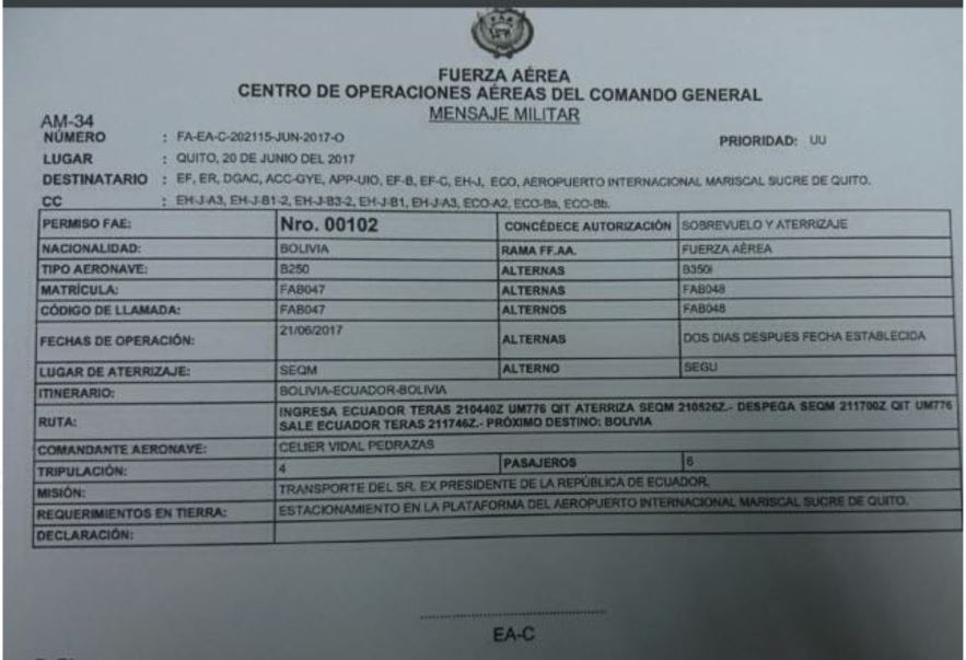 Un avión de la Fuerza Aérea de Bolivia ha recogido en Quito al expresidente Rafael Correa para trasladarlo a ese país, en donde ha participado en una conferencia internacional sobre migraciones, convocada por el Presidente Evo Morales.