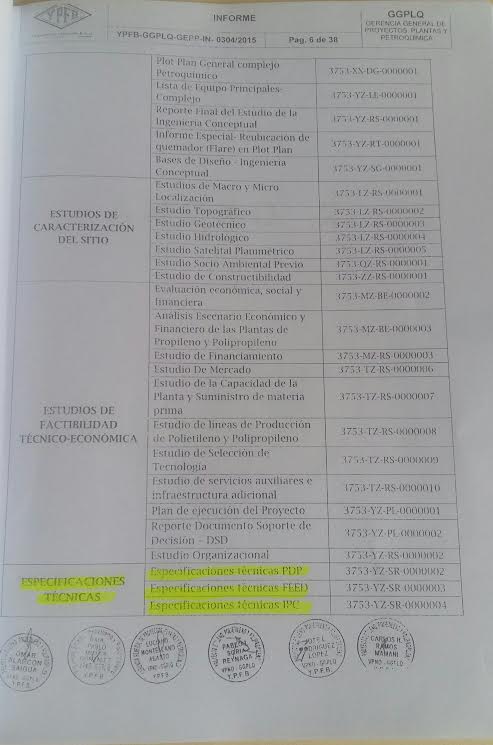 “YPFB, durante siete meses, calificó las propuestas de IPC, y el pasado 24 de marzo hizo conocer mediante una nota a Tecnimont y a TR que fueron adjudicadas con la Primera Fase del IPC”, subrayó
