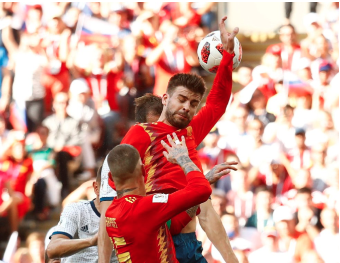 Gracias a la mano más grosera de todo el mundial, Gerard Pique salta con el brazo arriba, toca la pelota con la mano. Artio Dzyuba la clava fuerte al palo derecho y convierte.