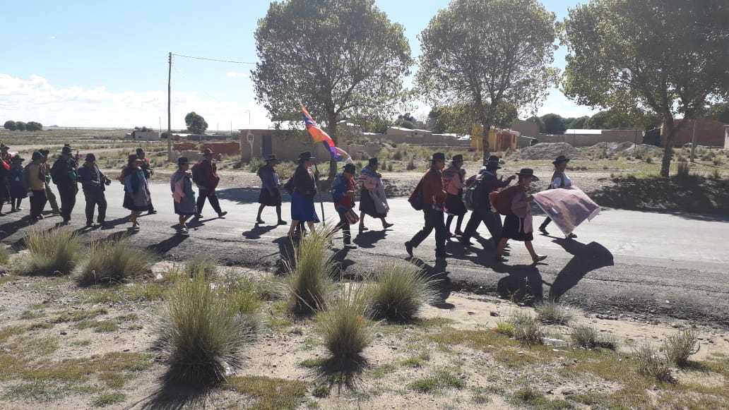 El 6 de febrero se ha emprendido una marcha que salió de la ciudad de Sucre rumbo a la ciudad de La Paz. El gobierno se ha comunicado ágilmente con los marchistas advirtiendo su seguimiento y se ha dispuesto al diálogo. Luego de 13 días de caminata, a la espera del diálogo a realizarse el día 21 de febrero, la marcha hizo una pausa en la localidad de Pazña (Oruro) a la espera de los resultados, no obstante, de más de dos horas de conversación entre delegados de la marcha y el presidente Evo Morales, no se obtienen resultados favorables (Página Siete, ). Las autoridades no pudieron registrar la reunión para informar a sus bases, se les decomisaron los celulares, no se permitió que se tomen fotografías, se les increpó estar de lado de la derecha y se recomendó hacer llegar sus propuestas y demandas a la Asamblea Legislativa (Audio informe corto de la reunión, ).