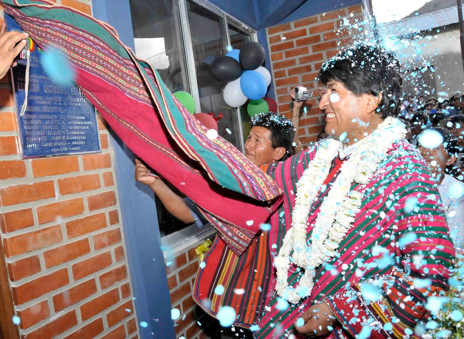 | El presidente Evo Morales entregando obras en Sacabamba, entre ellas el mercado, el 13 de octubre de 2012 / Foto: ABI |