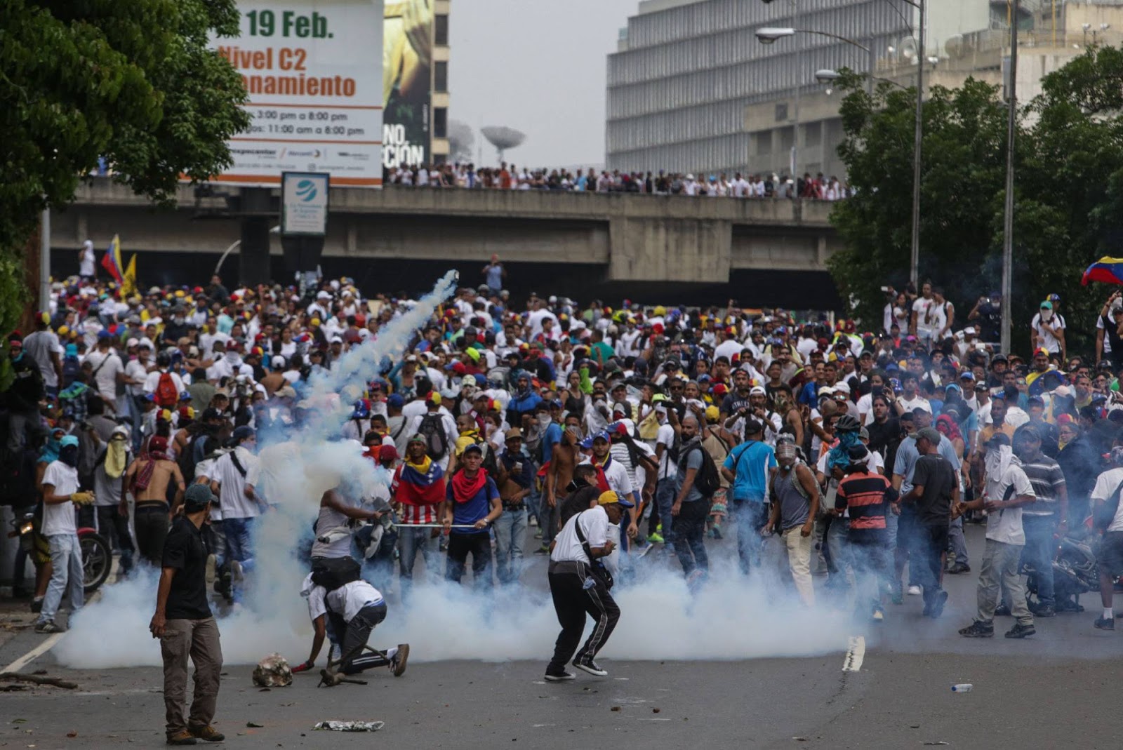 | En el este de Caracas se presentaron algunos disturbios. La policía bloqueó el paso de personas que se unían a la marcha por unos momentos, pero después los dejó pasar. |