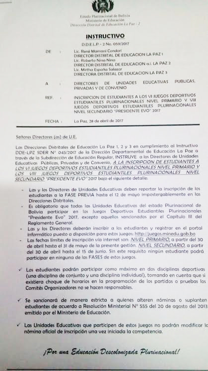 No reconocen juegos estudiantiles porque no se llaman “Presidente Evo”
