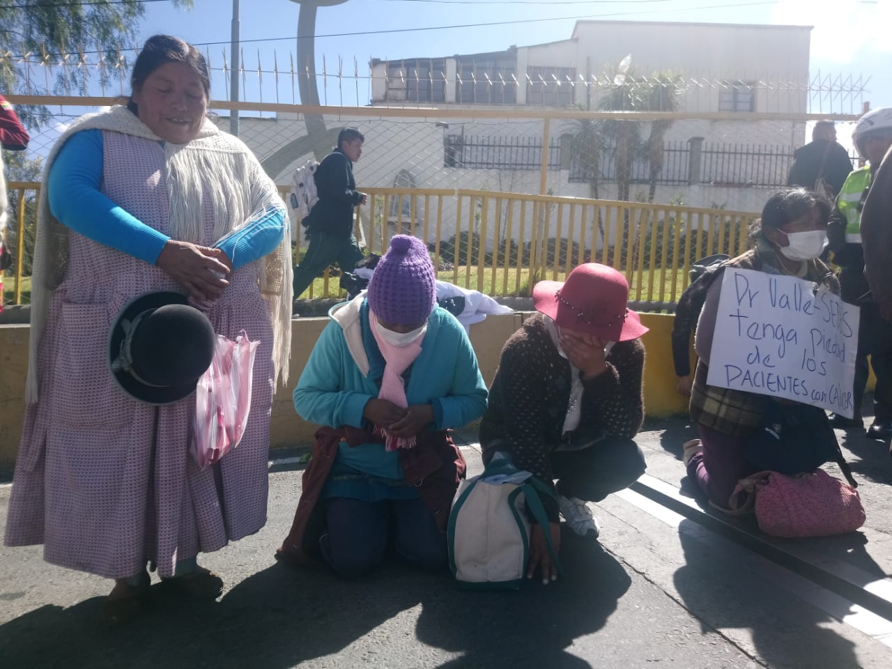 Tras el anuncio del cierre de la Unidad de Radioterapia, los pacientes con cáncer del Hospital de Clínicas de La Paz claman con desesperación su derecho a vivir, salieron hoy a las calles de la zona Miraflores para exigir a las autoridades del Servicio Departamental de Salud (SEDES) y Ministerio de Salud una pronta atención a sus demandas.
