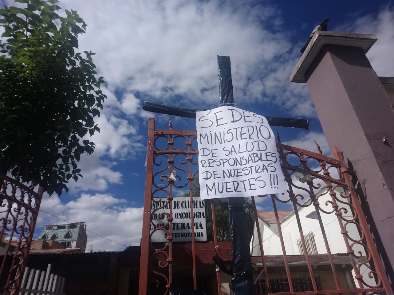 Con una marcha de crespones negros, pacientes con cáncer junto a sus familiares procedieron este lunes a crucificarse en las barandas del Puente de Las Américas, en la ciudad de La Paz, en protesta contras las autoridades departamentales que no lograron reponer los servicios de Radioterapia.