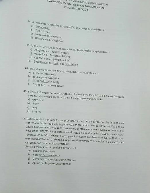 ¿Qué te parece el examen para los postulantes al TA? a) Difícil; b) Más o menos; c) Pichanga