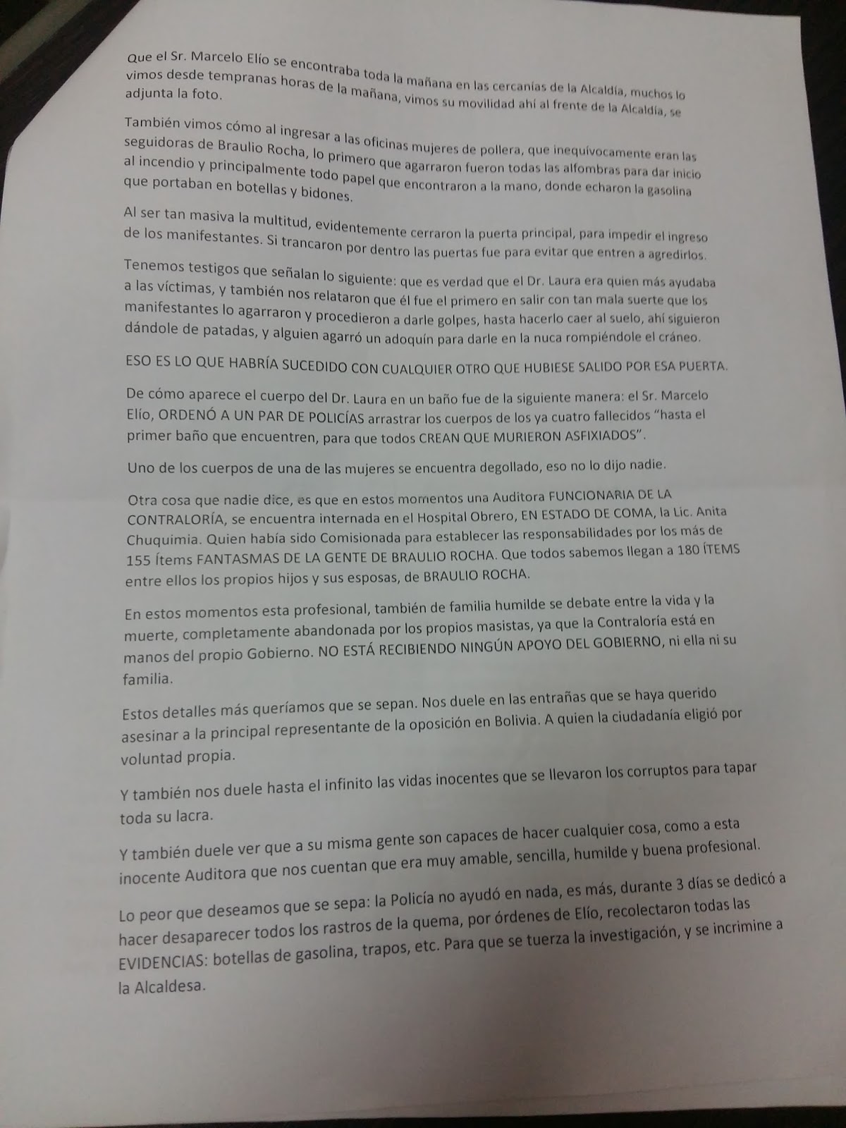 Esta carta fue escrita por funcionarios de diferentes departamentos de la Alcaldía alteña, tras una reunión convocada de forma espontánea para narrar uno por uno lo que vieron y la experiencia que tuvieron aquel fatídico día.