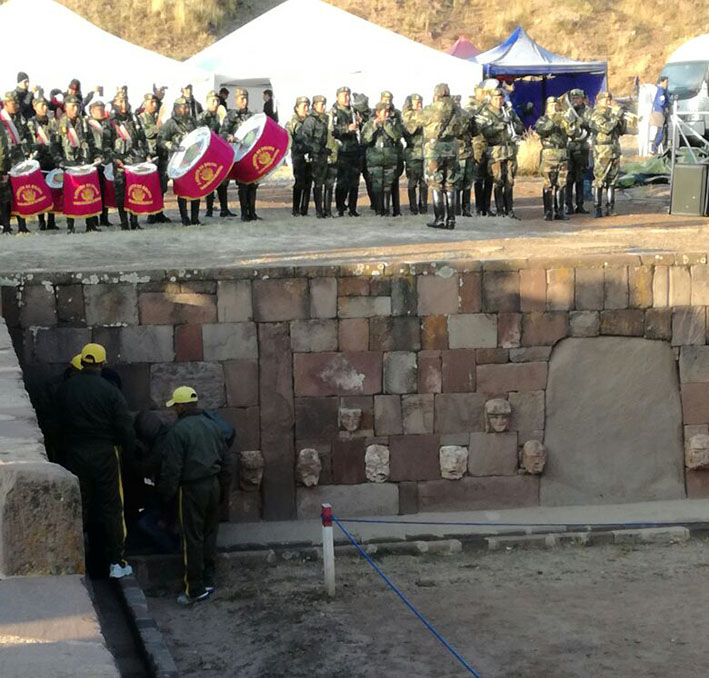 Un camarógrafo cayó al templete semisubterraneo de Tiahuanacu mientras filmaba